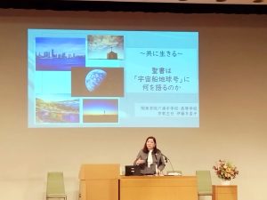 12日の一日修養会では、関東学院六浦中学校・高等学校の宗教主任である伊藤多香子先生から「共に生きる~聖書は「宇宙船地球号」に何を語るのか」という題でお話を伺い、クラスでのディスカッション 等をもちました。宇宙船地球号には様々な個性、違いをもった乗組員が乗り合わせています。この宇宙船が平和に向かって安全な航行を続けていくためには、聖書の中にそのヒントが示されていると思います。